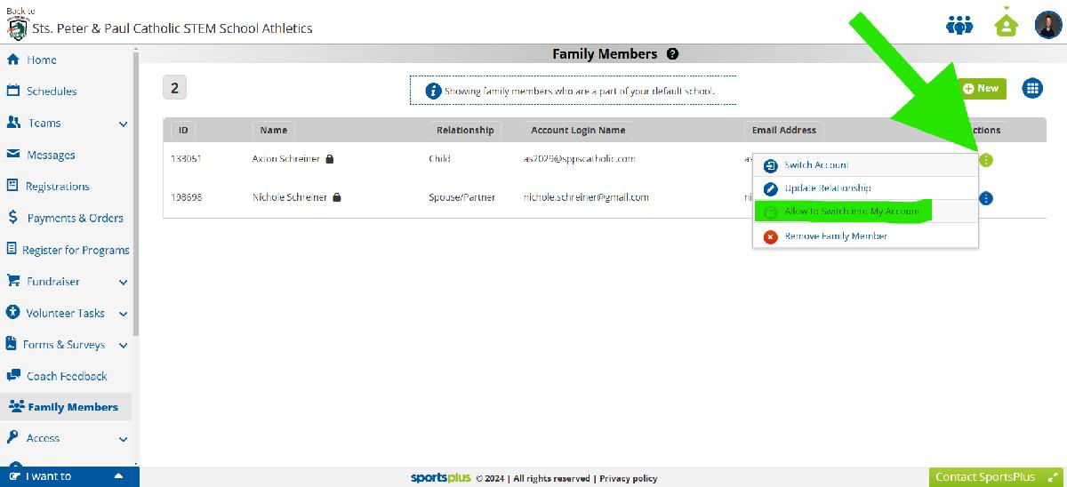 Then select the ‘3 Dots’ menu next to your child, and select ‘Allow to Switch into My Account’. Skip to Step 3 if you have already done this.