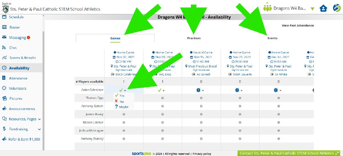 Updating Game & Practice Availability in Team Portal